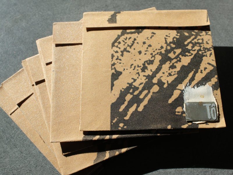=== Édition de 100 copies. Pochette de Boris jacobek -papier de verre imprimé, enduit, métal gravé-.