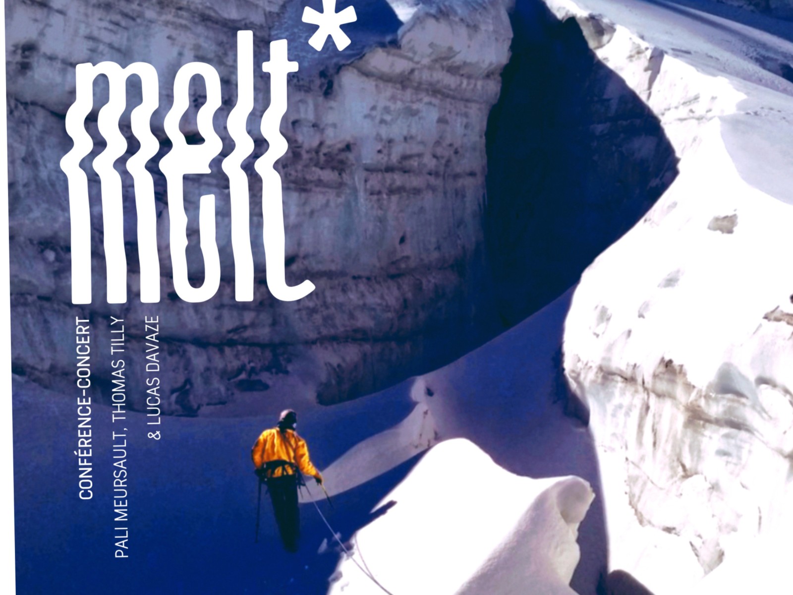 glaciers et d’une conférence de médiation scientifique faisant état des enjeux et des connaissances des scientifiques sur ces phénomènes, Melt souhaite combiner le regard scientifique et la création artistique pour toucher un large public et contribuer à construire de nouvelles formes de sensibilité et de culture, en phase avec les enjeux climatiques contemporains.