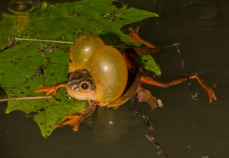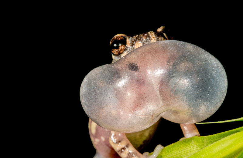Les reproductions explosives portent dans l’air leur pouvoir sur cet autour, cet alentour, s’imposant aux corps et aux troncs ; éloignant ou attirant d’autre espèces et ayant même le pouvoir d’en neutraliser certaines (une amie herpétologue m’a conté avoir vomi, en raison du son, après plusieurs heures passées sur une mare à explosive). Les espèces participant à ces rassemblements semblent privilégier l’univocité d’un spectre sonore saturé plutôt que les phonèmes qui leurs sont propres. Ce ne sont plus des « voix » qui sont émises et reçues, mais leur accumulation en un mur de bruit. Ici encore, l’interprétation d’une donnée n’ouvre que des questions sur ce que nous comprenons de la situation et des prismes ontologiques par lesquels nous la percevons.